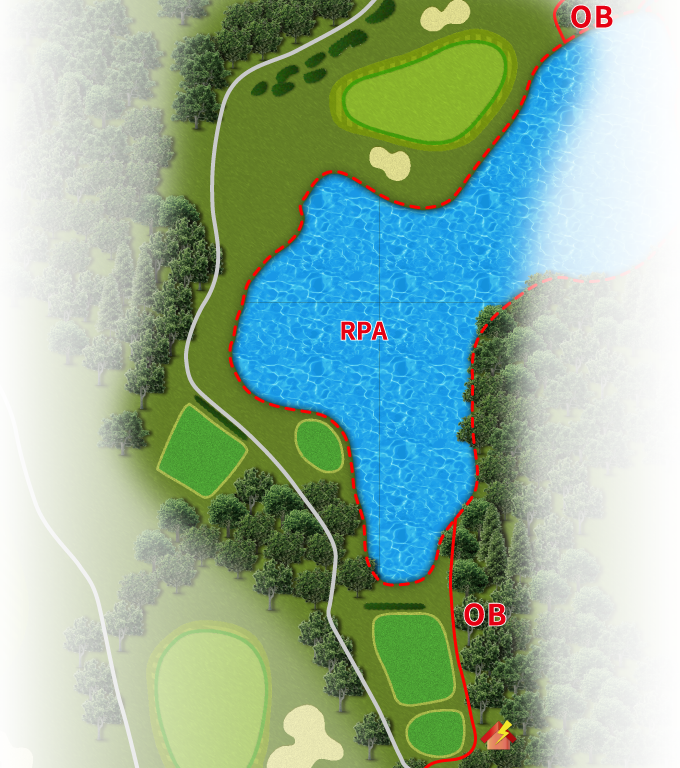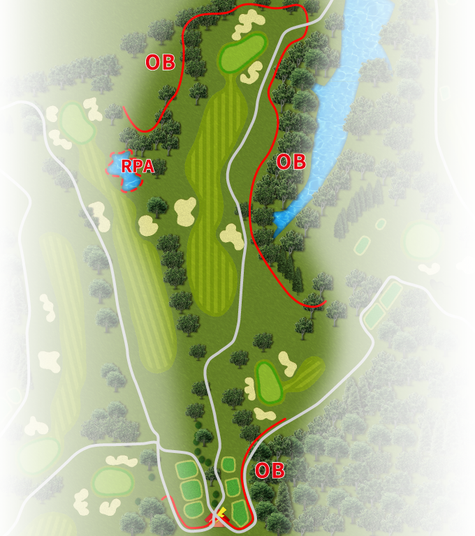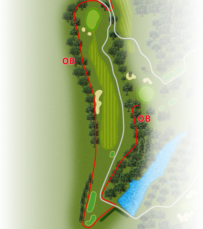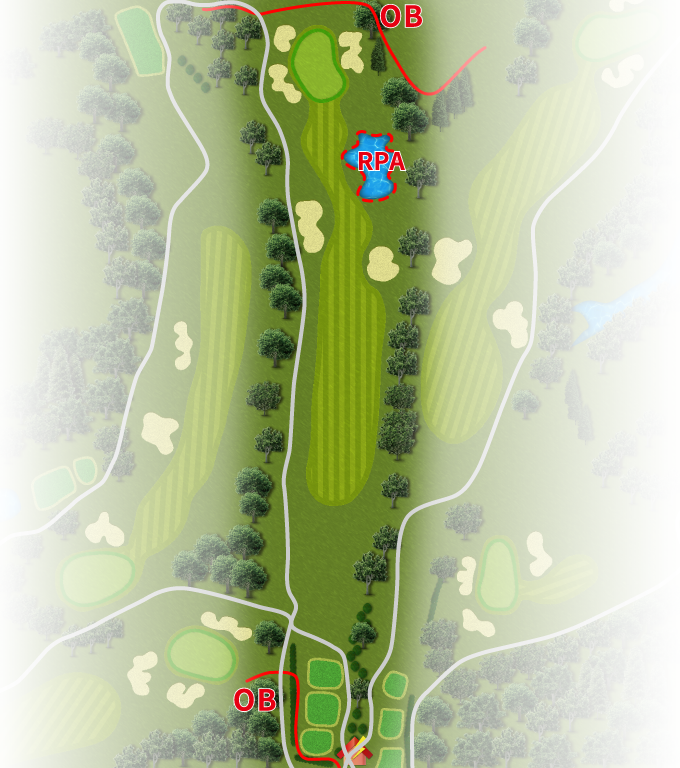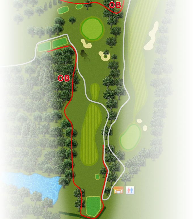 ストレートホール。ティショットさえぶれなければチャンスホール。グリーン右手前のラテラルウォーターハザードに注意。